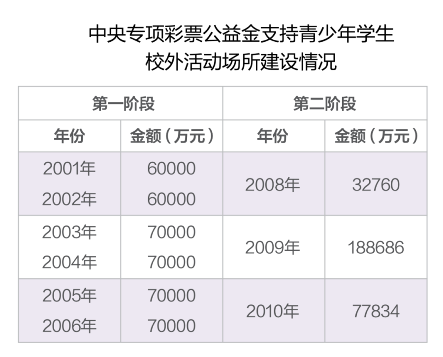 2000年6月,中共中央办公厅、国务院办公厅印发了《关于加强青少年学生活动场所建设和管理工作的通知》。于是,相关部门决定从中央专项彩票公益金中拿出一部分用于补助青少年校外活动场所的建设和维护。