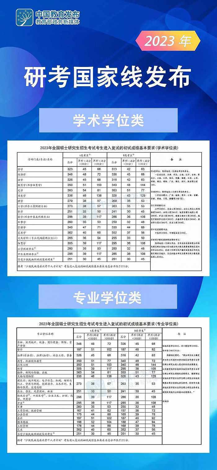 据教育部政务新媒体“微言教育”,2023年研考国家线发布。