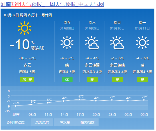 郑州今年立冬以来的最低气温-6.1℃,预计7日最低气温-12℃至-11℃,最高温度-3℃至-2℃。这是郑州今年入冬后首次破零下10℃,也将是20年来冬季最低气温新纪录。从省气象台提供的数据来看,从2000年至2020年,郑州突破零下10℃的年份只有2000年和2008年,两次均未达到零下11℃。