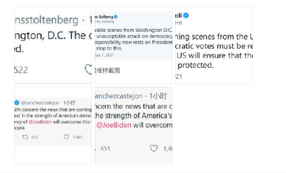 北约秘书长延斯·斯托尔滕贝格刚刚发推称,华盛顿特区发生令人震惊的一幕。这次民主选举的结果必须得到尊重。