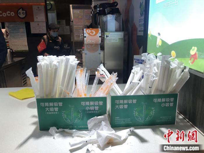 饮品店里的纸质吸管。 中新网 左宇坤 摄