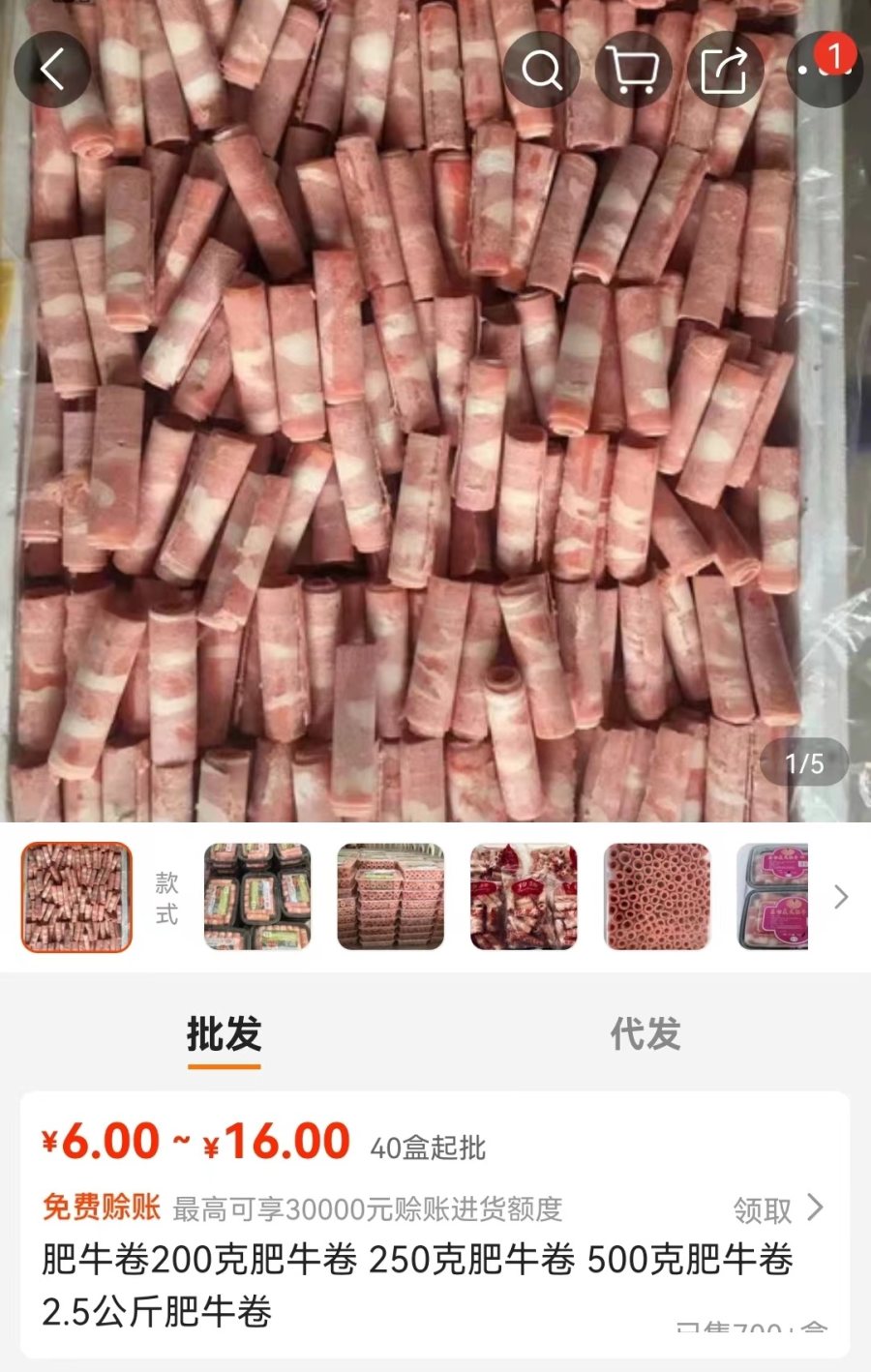 电商平台一商家销售的调理“肥牛片”售价仅16元/斤。