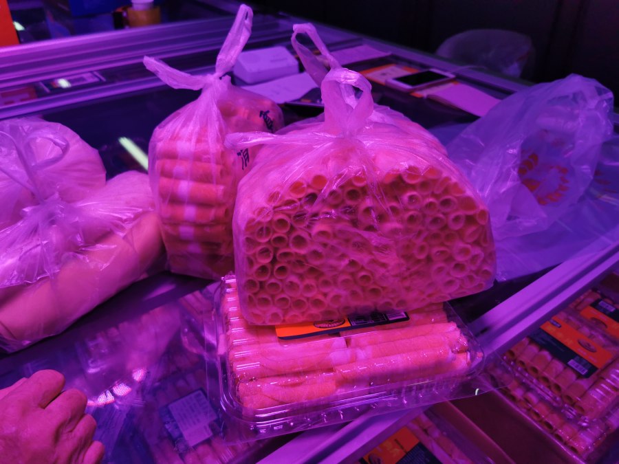 据王先生了解,除工地食堂、低端餐饮外,调理类肉片在商超渠道的占比也在加大,一方面源于产品利润高,另一方面也与厂商加大包装与宣传投入有关,“像这种针对商超的肉卷包装,一个成本要2块钱,而简易包装盒仅要几毛钱,再加上有代言人做广告,顾客喜欢买。”