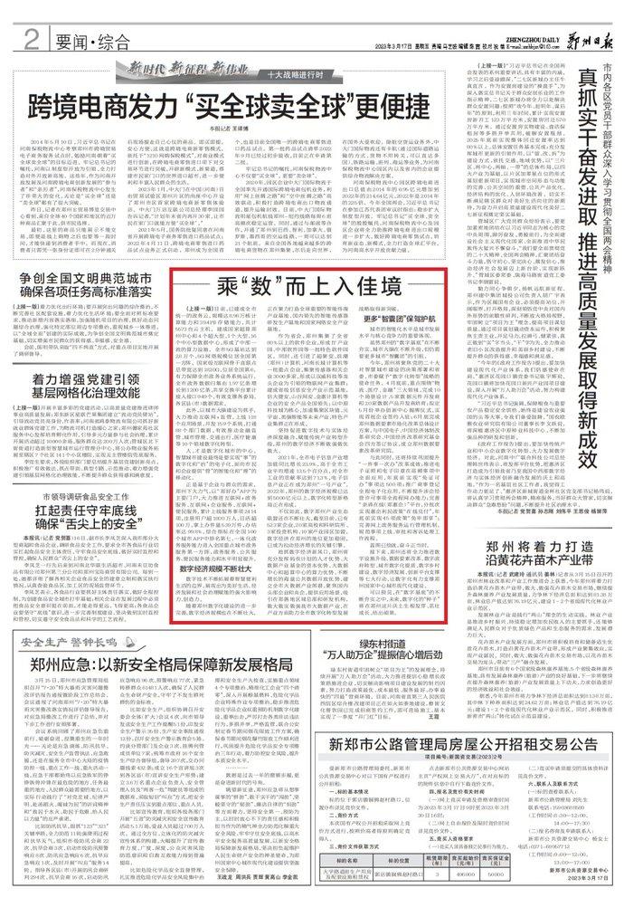 可以预见,在“数字基底”的不断夯实之中,未来,数字化的“种子”将在郑州这片沃土生根发芽、茁壮成长、结出硕果。(郑报全媒体记者 袁帅)