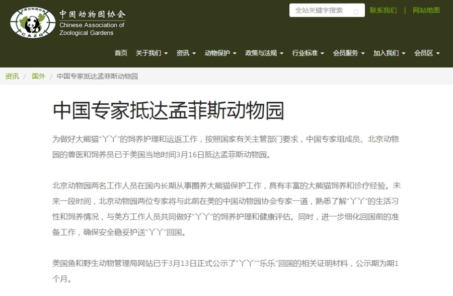 为做好“丫丫”饲养护理运返,中国专家已抵达孟菲斯动物园