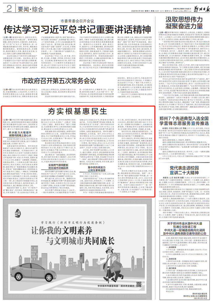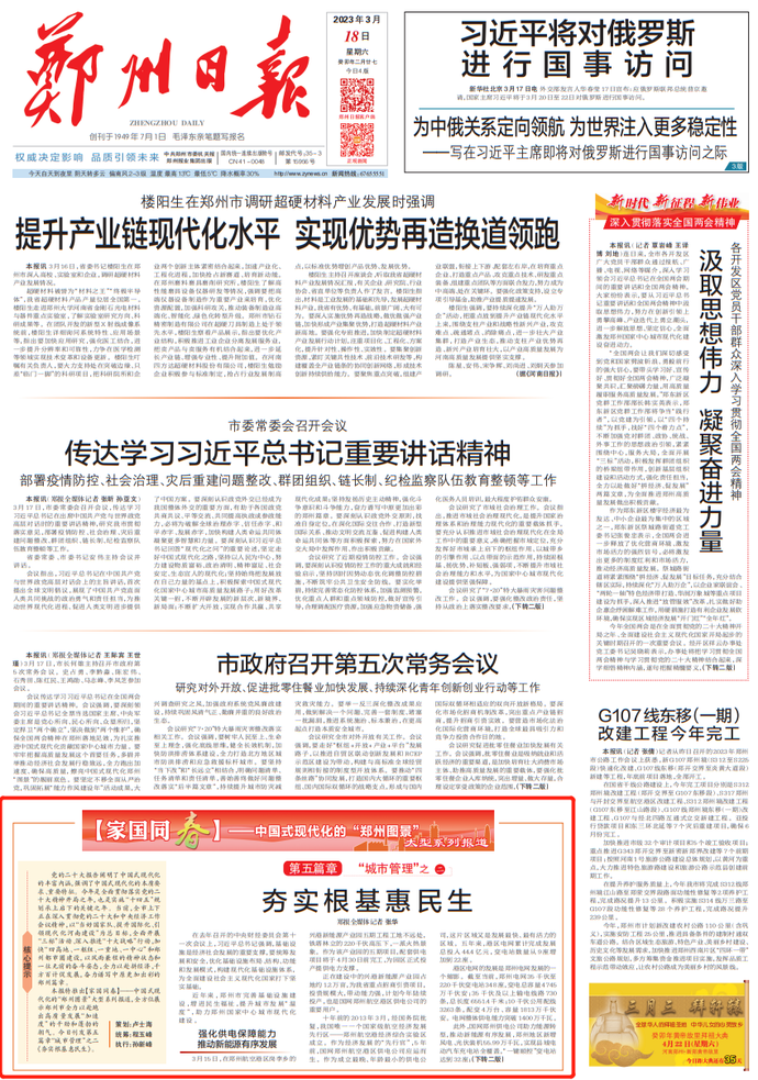 本报特推出【家国同春】——中国式现代化的“郑州图景”大型系列报道,全方位展示郑州市全力以赴跑出高质量发展“加速度”的干劲和蓬勃的朝气。今日刊发第五篇章“城市管理”之二《夯实根基惠民生》。记者 张华