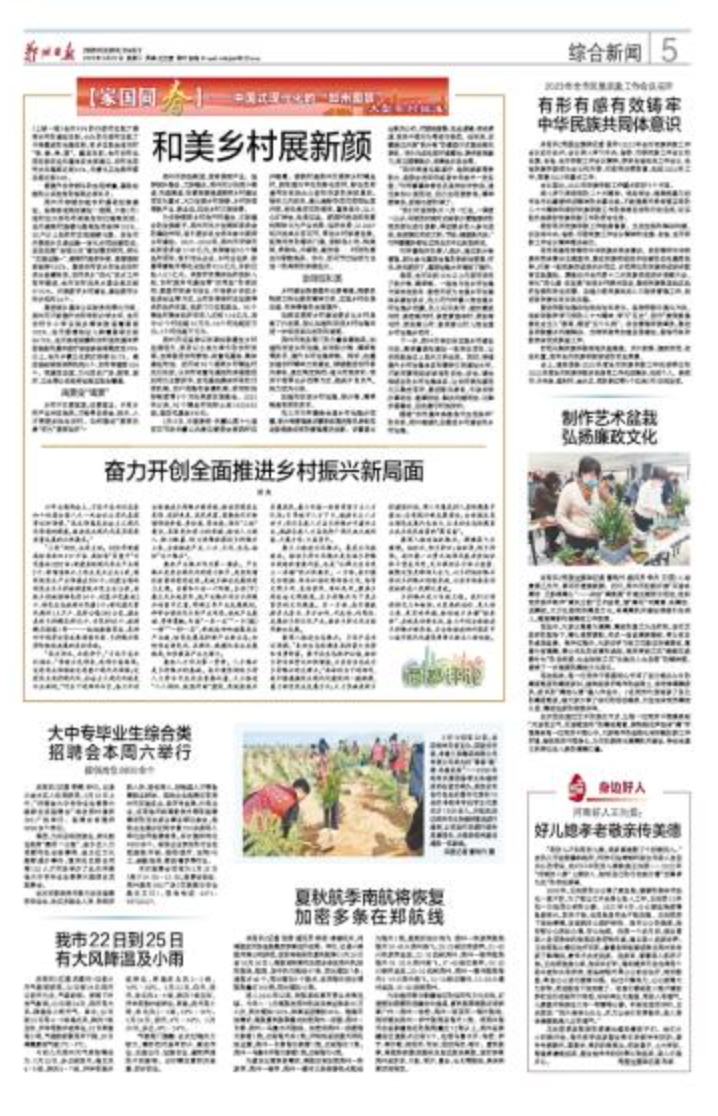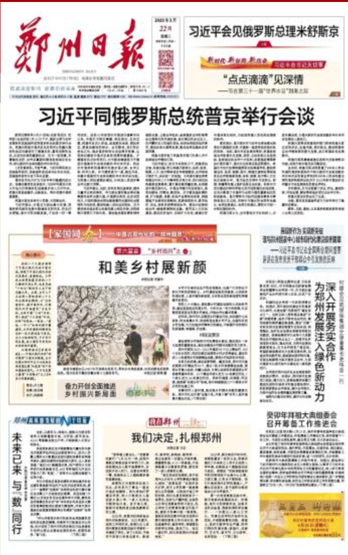 本报特推出【家国同春】——中国式现代化的“郑州图景”大型系列报道,全方位展示郑州市全力以赴跑出高质量发展“加速度”的干劲和蓬勃的朝气。今日刊发第六篇章“乡村振兴”之三《和美乡村展新颜》。
