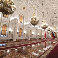 普京在乔治大厅为习近平举行隆重欢迎仪式。