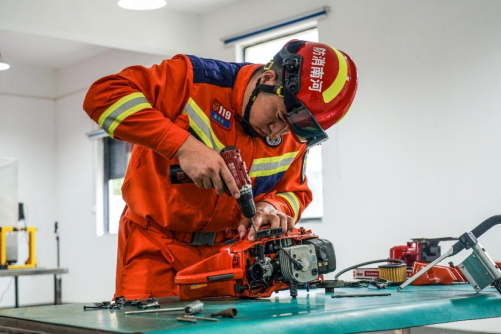 他见证着训练由之前的偏重体能,到现在体能和技能同样重要,“我们训练中也会增加绳索等技能训练、用于探险救援和水域救援等,以应对更多的救援现场需求”;也见证着支援装备变得更加先进,“以前的呼救器只是发光和发声,现在不仅能显示定位,还能显示剩余气量,从而测算消防员在火场中的安全时间,大幅度提高消防员的生命安全保障”;也见证着救援器材的改善,“工具效率直接影响到救援效率,以前的工具功率比较低,切开钢板需要十秒钟,但现在装备功率变大,可能五秒钟就能完成切割。在一些危急情况中,假如伤者身体情况非常糟糕,5秒钟可能就是挽救一个生命的时间。”