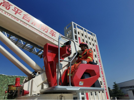 李闯在操作登高平台消防车