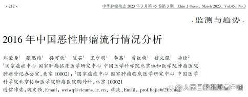 这份报告根据全国各肿瘤登记处上报至全国肿瘤登记中心的2016年恶性肿瘤登记数据,估计2016年中国恶性肿瘤流行特征。纳入487个符合数据质控标准的登记处,共覆盖人口3.8亿人,其中城市人口1.92亿人,农村人口1.88亿人。按性别、城乡、年龄分层计算不同肿瘤的发病率和死亡率。