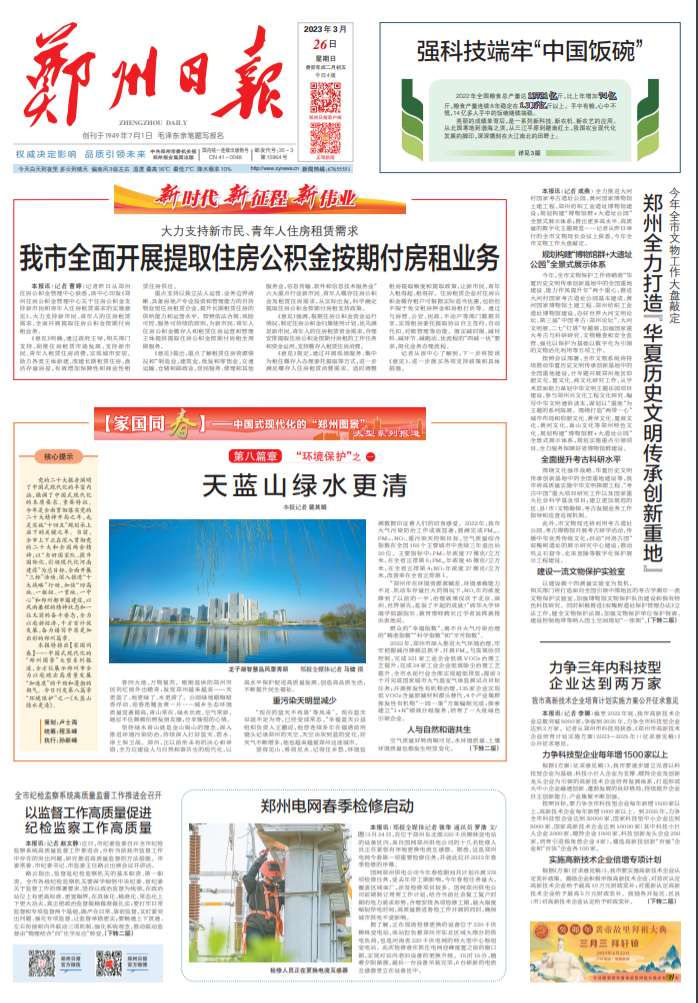 以党的二十大精神为指引,郑州高质量发展的生态根基正在不断夯实,污染治理正在由坚决走向深入。
