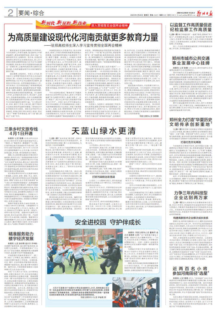 坚持绿水青山就是金山银山的理念,深入推进环境污染防治,持续深入打好蓝天、碧水、净土保卫战。郑州,正以前所未有的决心和举措,全方位建设人与自然和谐共生的现代化,以高水平保护促进高质量发展、创造高品质生活,不断提升民生福祉。
