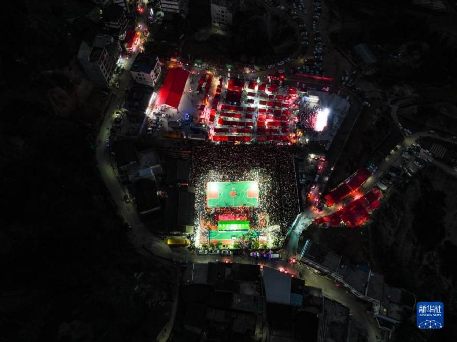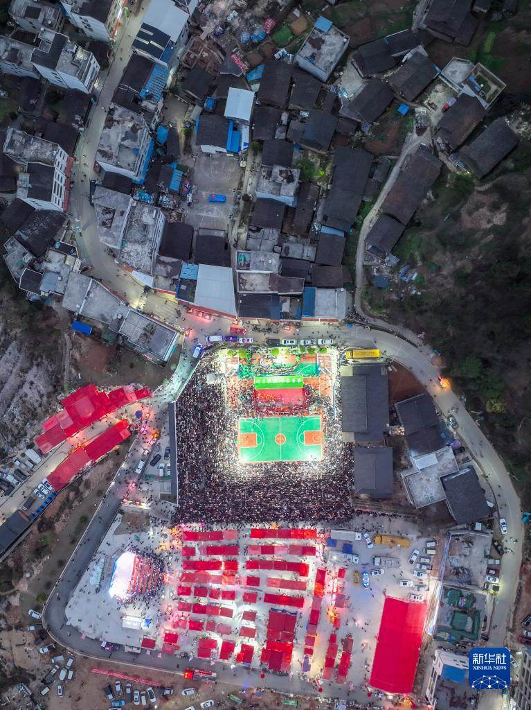 这是“村BA”比赛开始前的台盘村全景(3月26日摄,无人机照片)。新华社记者 欧东衢 摄