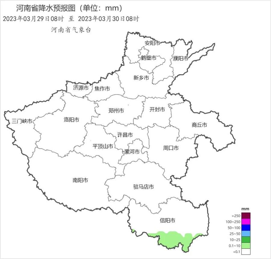29日信阳南部有小雨或零星小雨