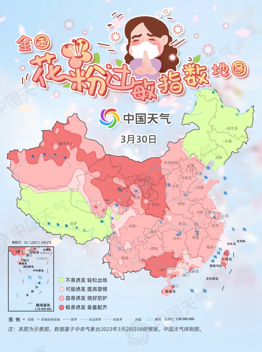 过敏星人注意!全国花粉过敏预警地图出炉,这些地方极易“中招”