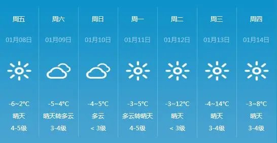 01月10日(星期日):多云,西北风3-4级 -4-4℃