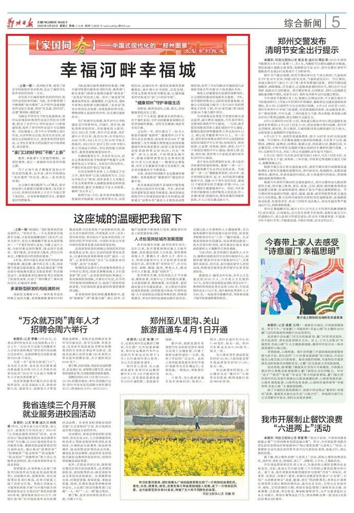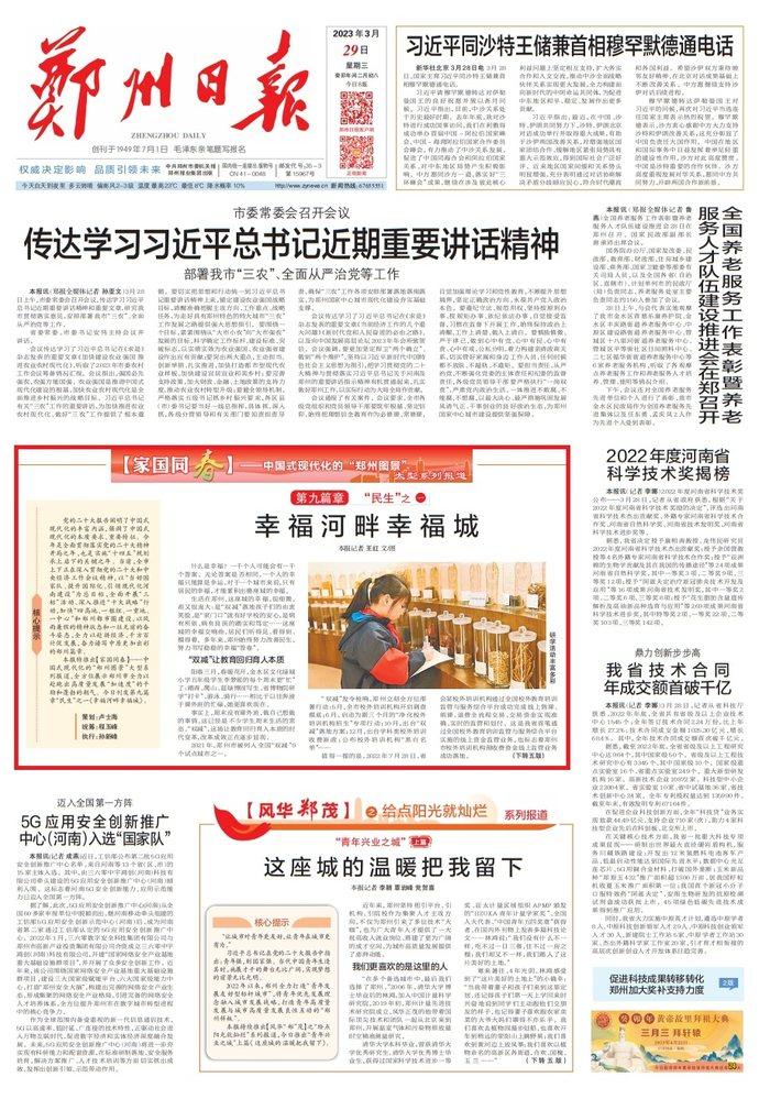 本报特推出【家国同春】——中国式现代化的“郑州图景”大型系列报道,全方位展示郑州市全力以赴跑出高质量发展“加速度”的干劲和蓬勃的朝气。今日刊发第九篇章“民生”之一《幸福河畔幸福城》。