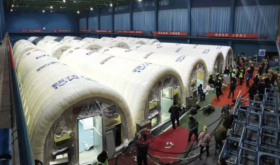 1月8日21时45分,每日最高可检测样本量达100万人份的“火眼”实验室(气膜版)在河北体育馆网球馆正式建成投用,来自深圳的检测人员陆续走进实验室开始工作。