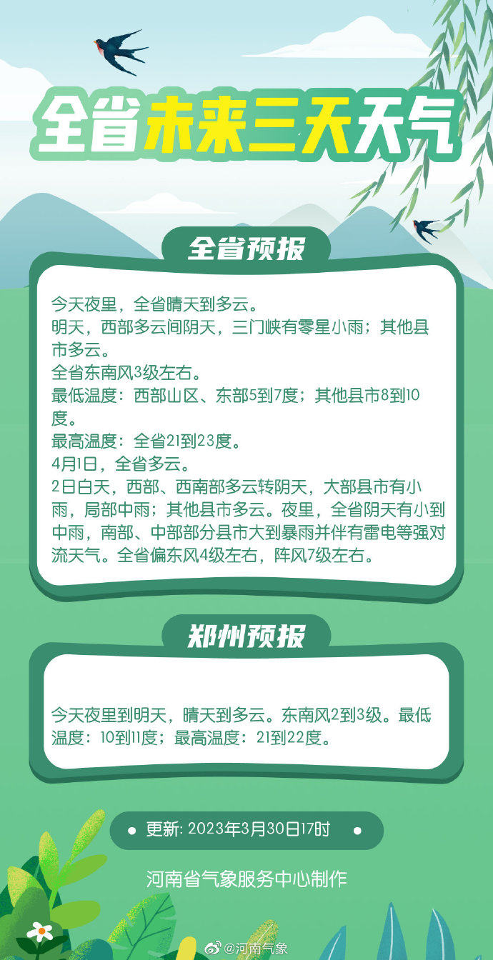 4月初河南再迎大范围降水天气,预计清明节前,冷暖空气一相遇,又会给我省带来一场大范围降雨!主要降水时段是在2日夜里到3日,全省阴天有小到中雨,南部、中东部部分县市大到暴雨,并伴有雷电等强对流天气。