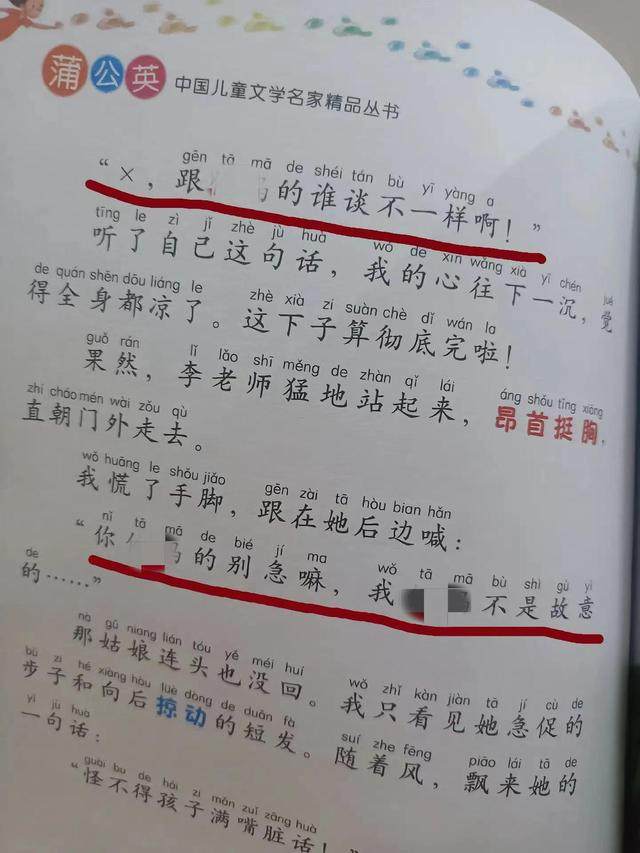 3月28日,河北保定的张先生在图书馆购买了儿童读物来查找女儿演讲比赛所需内容,发现书本内脏话连篇,充斥各种粗俗口癖。爆料视频显示,该书本名为《撞见怪老头儿》,封面印刷着“纯美暖心·名家经典童话”等推荐字样,书页里则印刷有“专为低年级孩子打造的精品注音读物”。对此,出版社工作人员回应称,这只是书中的一个小故事,希望可以把故事完整读完,童书也不能只因为那三个字就把整本书否定掉,要从总体上去看。