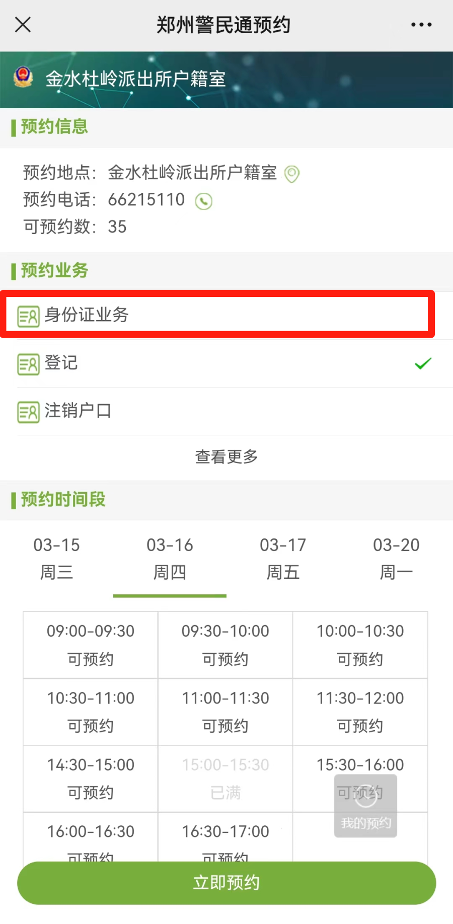 选择“身份证业务”,随后预约时间段,预约成功后到线下办理。