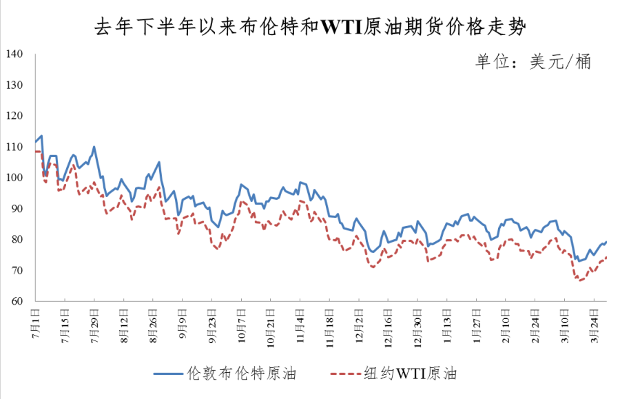 国家发改委价格监测中心预计,短期国际油价将呈震荡走势。当前,全球原油供需基本面没有发生较大改变。供应方面,“欧佩克+”无意改变当前产量政策,美国原油产量稳步恢复,俄罗斯减产幅度低于预期,全球原油供应基本稳定。需求方面,欧佩克3月月报预计今年全球石油需求为1.019亿桶/日,与此前预估持平。欧美采取的救市政策对银行危机虽有缓和作用,但金融风险仍未有效消除,投资机构风险偏好的变化将影响油价震荡运行。