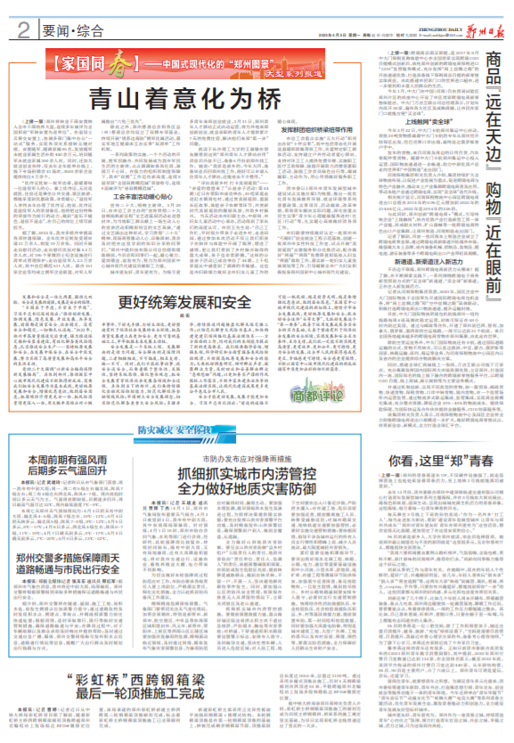 本报特推出【家国同春】——中国式现代化的“郑州图景”大型系列报道,全方位展示郑州市全力以赴跑出高质量发展“加速度”的干劲和蓬勃的朝气。今日刊发第十篇章“安全发展”之三《青山着意化为桥》。