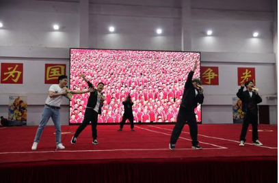 为了迎接成龙一行的到来,塔沟武校特意提前排练了学校的拿手戏——万人团体操《壮志豪情》,两万多名演员参演的这台团体操,集纳了各式少林功夫和十八般兵器,长江、黄河奔流的场景、巨大的五星红旗和奥运五环旗帜依次展现,场面宏大,气势磅礴。