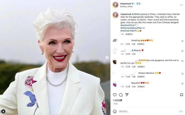 “再见中国,谢谢你让我度过了美妙的两周。”当地时间2日,特斯拉和推特CEO马斯克的母亲梅耶·马斯克在社交媒体上发文,称结束了为期两周的中国之旅。 3月18日,梅耶在社交媒体上发文称,将前往中国进行书籍签售和旅游观光,为期两周。据社交媒体上公布的信息显示,她在中国期间,游览了广州、厦门、成都、苏州、湖州、武汉和上海等地。 梅耶在中国的第一站是广州。3月21日,她发文称,已在广州进行了签名售书、游览了沙面岛、夜游了珠江,在103楼欣赏了广州塔的风光,并感叹这是“美好的一天”。梅耶的第二站来到了厦门,她在签售前先游览了南普陀寺,并于3月22日在社交媒体上发布了参观视频。视频中,她笑容满面,正认真听取工作人员的介绍。参观结束后,她还发文称赞南普陀寺“很美”。 3月25日,梅耶发表的帖文显示,她已经抵达了成都,并在“漂亮的特斯拉门店”前和特斯拉标志合影。在这条帖子中,梅耶还加上了“埃隆·马斯克”和“自豪的母亲”等标签。梅耶·马斯克与成都的特斯拉门店合影。图片来源:梅耶社交媒体截图在成都,梅耶还参观了金沙遗址博物馆,并观看了川剧变脸表演,她称赞成都之行是一段“绝妙的”旅行。3月27日,梅耶的社交媒体信息显示,她已经到达了苏州。她发布了一张穿着中国服装品牌西服的照片,并问道:“大家觉得中国品牌设计的这件奶油色西装怎么样?”梅耶·马斯克身穿中国品牌西装。图片来源:梅耶社交媒体截图网友纷纷在帖文下评论道“好棒”“绝了”“人美衣也美”。梅耶在社交媒体上还写道:“(在苏州)沿着公园散步,看到美丽的鲜花盛开,真是太棒了。我还去了一个有500年历史的老房子,了解了(以前的)人们是如何生活的……我在中国玩得很开心。”3月29日,梅耶在社交媒体上更新了游览湖州影视城的视频,称自己找到了一处“好地方”,并让自己的女儿、埃隆·马斯克的妹妹托斯卡·马斯克——一位电影制作人——找一本20世纪20年代的上海爱情小说,到这里来拍一部电影。梅耶·马斯克游览湖州影视城。图片来源:梅耶社交媒体截图