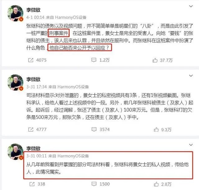 近几天,各平台热搜都被张继科事件刷屏。3月31日,资深调查记者李微敖曝光体育明星张继科欠下500万赌债,还拿女明星私密视频抵债一事,引起舆论风波。