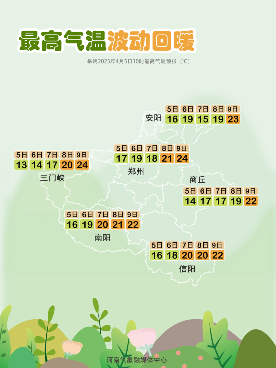 气温方面,未来五天最高气温波动回暖,预计本周末全省大部可回升至20℃+,暖意融融的春天又要回来啦!