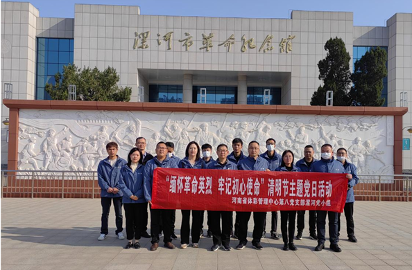 清明节前夕,省体彩中心第八党支部漯河党小组组织漯河分中心党员和部分体彩实体店代销者党员来到漯河市烈士陵园,开展“缅怀革命英烈 牢记初心使命”主题党日活动。