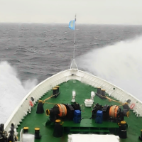 12时10分,“海巡06”轮抵达北纬25度24.2分,东经120度27.2分位置,按照既定路线由南向北航行,巡查台湾海峡中部水域。