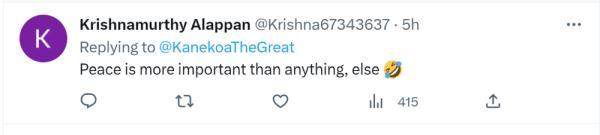 还有网友直言:“和平比什么都重要吧。”
