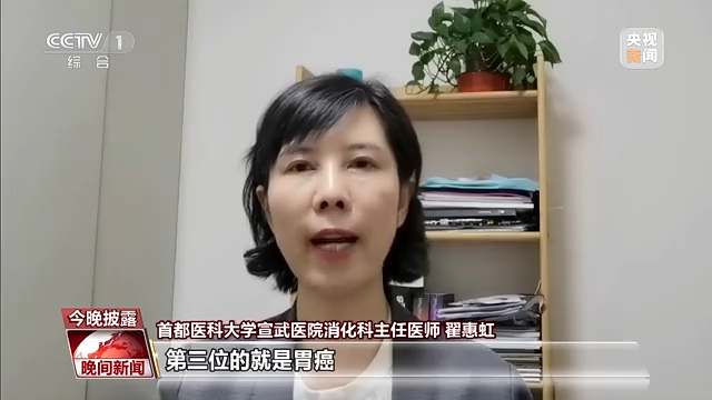 首都医科大学宣武医院消化科主任医师 翟惠虹:在我们整个肿瘤的发病谱里排在第三位的就是胃癌。