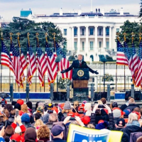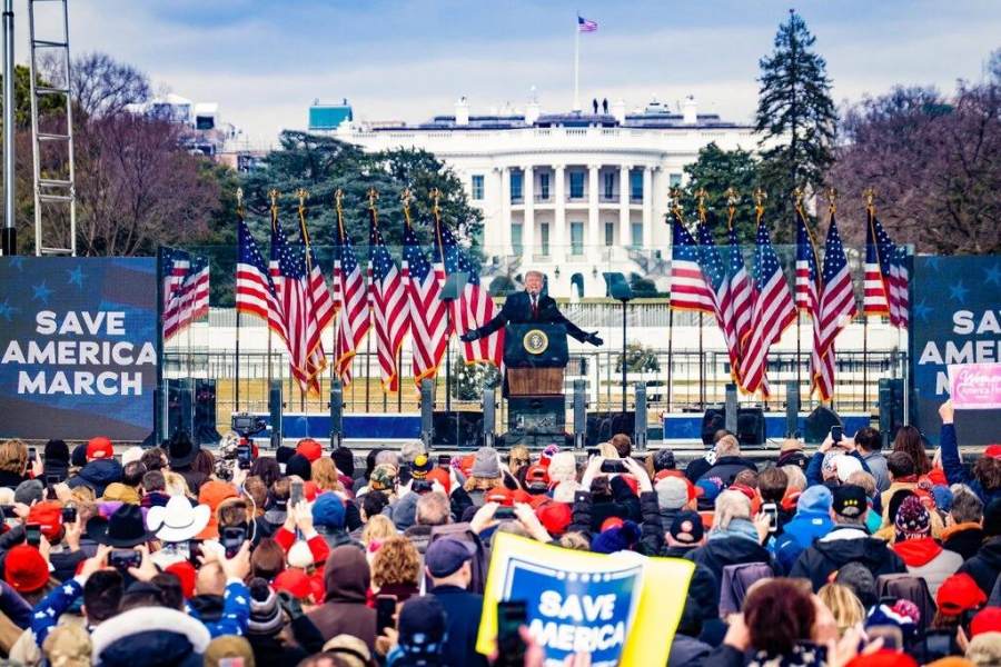 ↑1月6日中午,特朗普在白宫前演讲。冲击国会事件后,特朗普被指“煽动叛乱” 图据《纽约时报》