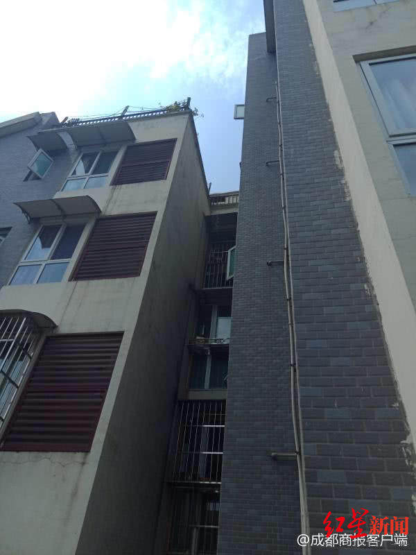 ↑事发时小婷从家中厕所窗台爬出,模仿动画片攀岩从6楼坠落。
