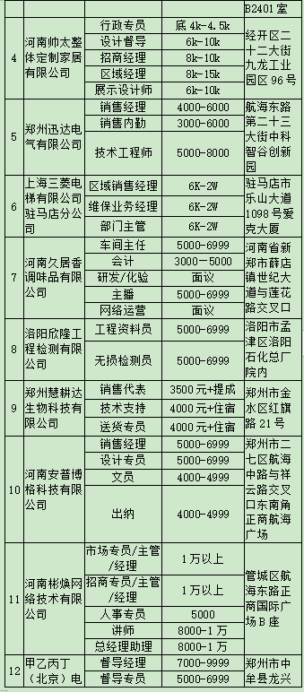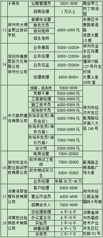 4月13日(周四)——郑州人力资源中心市场(大学中路95号 )