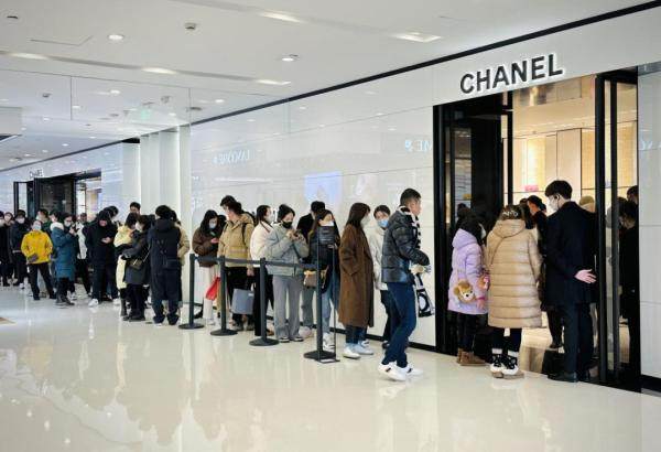 顾客在杭州大厦香奈儿精品店排队买新品