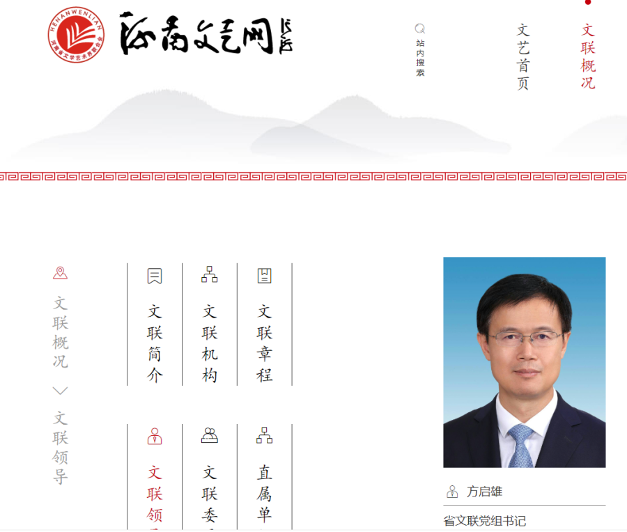 4月14日,河南省文联官网河南文艺网更新的"文联概况"栏目显示,2023年4月,方启雄任省文联党组书记。