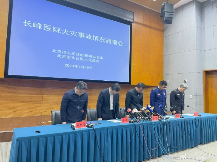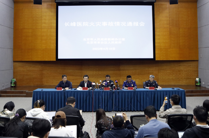 4月18日12时57分,北京市丰台区消防救援支队接警,北京长峰医院住院部东楼发生火情。今天,北京市人民政府新闻办公室举行长峰医院火灾事故情况通报会,市公安局、市卫健委、市消防救援总队、丰台区政府相关负责人通报情况并回答记者提问。