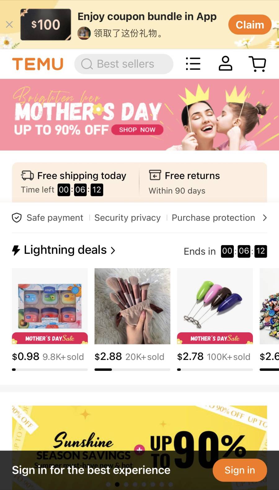 从2022年九月开启“多多出海扶持计划”,拼多多先后扶持了国内一万家制造业企业,培育100个出海品牌,再到10月占领苹果App Store、Google Play等应用商店榜首,Temu在美国开始稳住脚跟,后续更是以黑马姿态杀入美国“黑五”大促,其推出的“最低一折销售,购物满0.1元包邮、90天不满意全额退款”等优惠政策在美国更是少见。在其他网购平台平均几十美元的连衣裙,在Temu上只有个位数。正是这些看似在国内司空见惯的销售策略,迅速占领了美国网购平台市场、超过亚马逊等老牌平台。