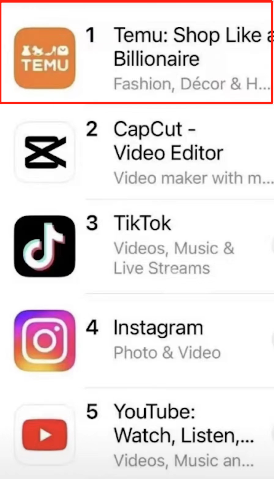 早在去年拼多多“出海”后,短短几个月,就打出了一系列漂亮的战绩,9 月中旬,Temu先后占领美国Android应用商店和Google Play商店购物应用的单日下载量第一,超过亚马逊和SHEIN。截至目前,Temu更是已经连续数周成为美国应用下载榜第一的APP。