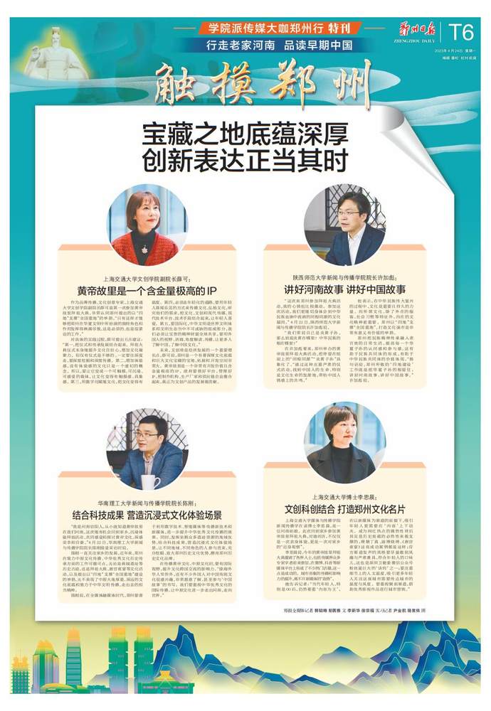 “郑州是一座古老而年轻的城市,古老是其文化历史资源的厚重;年轻是其在历史文化活化方面做了技术和时尚的结合。这次文旅之行,感受最深的就是郑州的发展速度,以及历史文化传播方面的创新。”谈起对郑州的印象,华中科技大学新闻与信息传播学院副院长郭小平如是说。