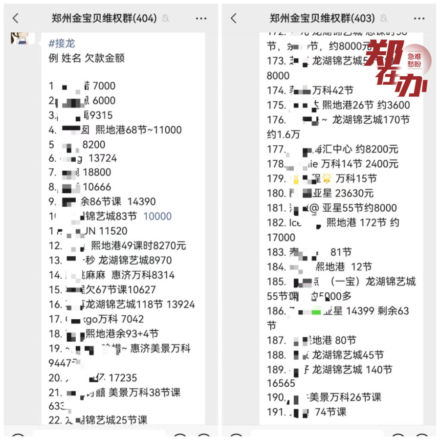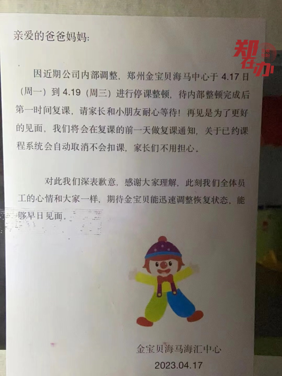 “有说线路整修的,有说内部调整的,他们的停课理由五花八门,就是再也找不到人了。”4月24日,多位家长向正观新闻郑在办服务平台求助,称找不到“金宝贝”的负责人员,退费成了一大难题。