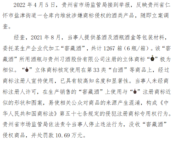 七、贵州省市场监管局查处祁某侵犯“习酒”注册商标专用权案