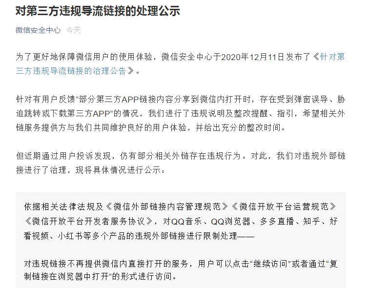 微信限制违规外链!含QQ音乐、知乎、小红书等