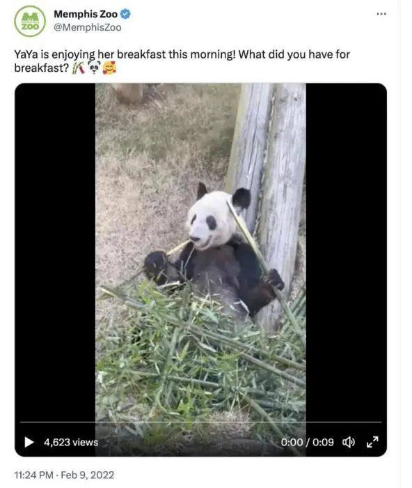 孟菲斯动物园2022年2月9日发布的“丫丫”视频截图。图片来源:孟菲斯动物园官方社交媒体截图