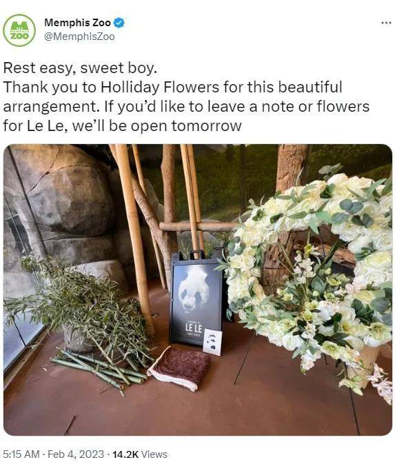 2023年2月4日,孟菲斯动物园发布纪念“乐乐”的推文。图片来源:孟菲斯动物园官方社交媒体截图